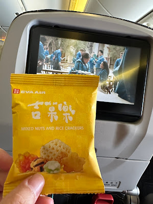 一上飞机不久,就有米果零食,后来还有提供各种饮料。
